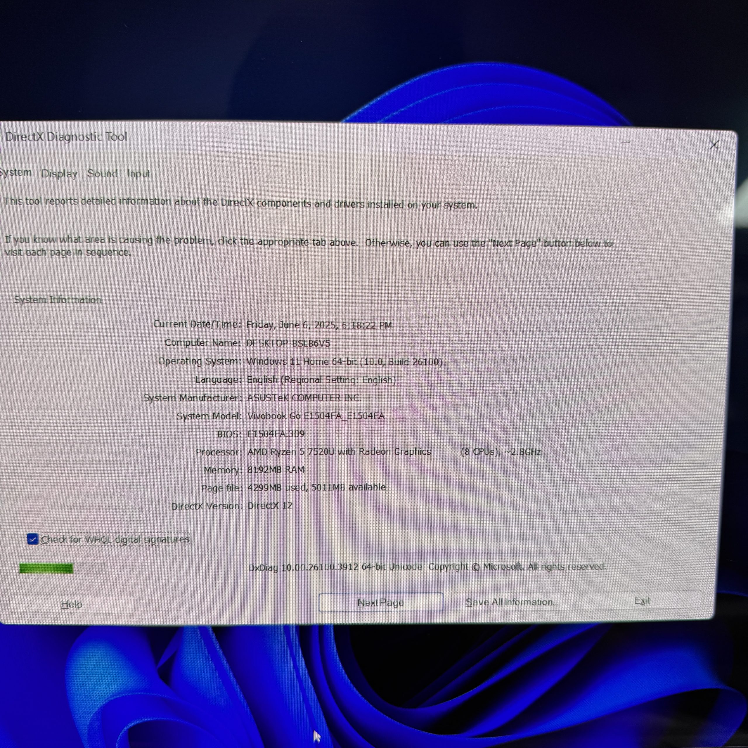 Date of model Manufacture/Estimated age of laptop: 2023.05 / 11 Months