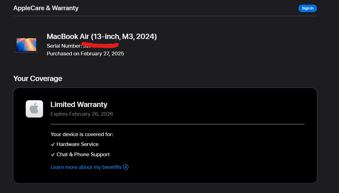 AppleCare until: Feb 26, 2026